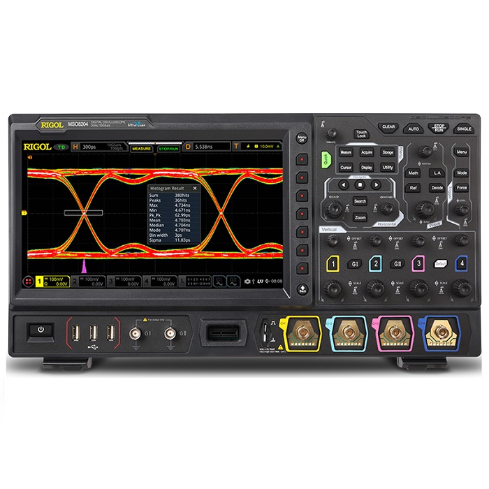 MSO8000 系列数字示波器是基于 RIGOL 自主知识产权的 ASIC 芯片和 UltraVision II技术平台的中高端混合信号数字示波器。示波器模拟通道带宽高达 2 GHz,集 7 种仪器于一身,具有 500 Mpts 超大存储深度、良好的波形显示效果、优异的波形捕获率和强大的数据分析功能,多项指标均达业界一流水平,并且支持实时眼图测量和抖动分析,是业内最具性价比优势的 2 GHz 混合信号数字示波器。