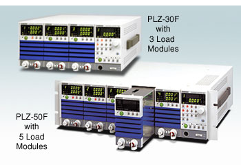 单元式电子负载装置 (CC/CV/CR/Zero volt input) : 4 型号 PLZ-U系列是具有恒流、恒阻、恒压等3种动作模式的小型高性能多通道电子负载装置。本设备采用单元(插入式)方式,以框架(2种型号)和负载单元(2种型号)共4种型号串联构成。框架PLZ-30F的3个通道上可安装负载单元,PLZ-50F的5个通道上可安装负载单元。负载单元备有70UA(支持0V输入、75W)和150U(自1.5V起动作、150W)。此外,可以通过并联运行增加电流容量和功率容量,功率容量可从75W到750W(在PLZ-50F上安装5台PLZ150U的情况下)进行组合。其上标准配备有GPIB、RS232C的通信功能,极便于嵌入各类检查系统,适合于燃料电池、次电池、DC/DC转换器、开关电源等试验和多输出电源等试验。