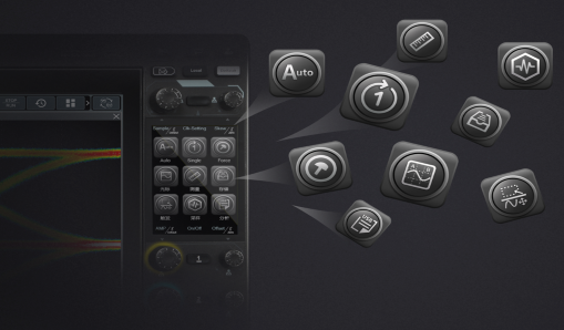 DS70000系列示波器配备了15.6英寸的高清触控大屏,根据用户测试的不同环境,可以电动调节屏幕的倾角,满足最优的观测角度。
