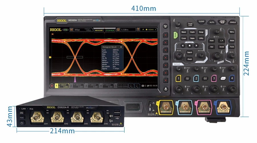 单台设备搭配外设可满足传统示波器应用:通过HDMI接口连接显示设备查看用户界面,通过USB Host接口连接鼠标进行点击、拖动操作,连接键盘进行数字或字符串设置。