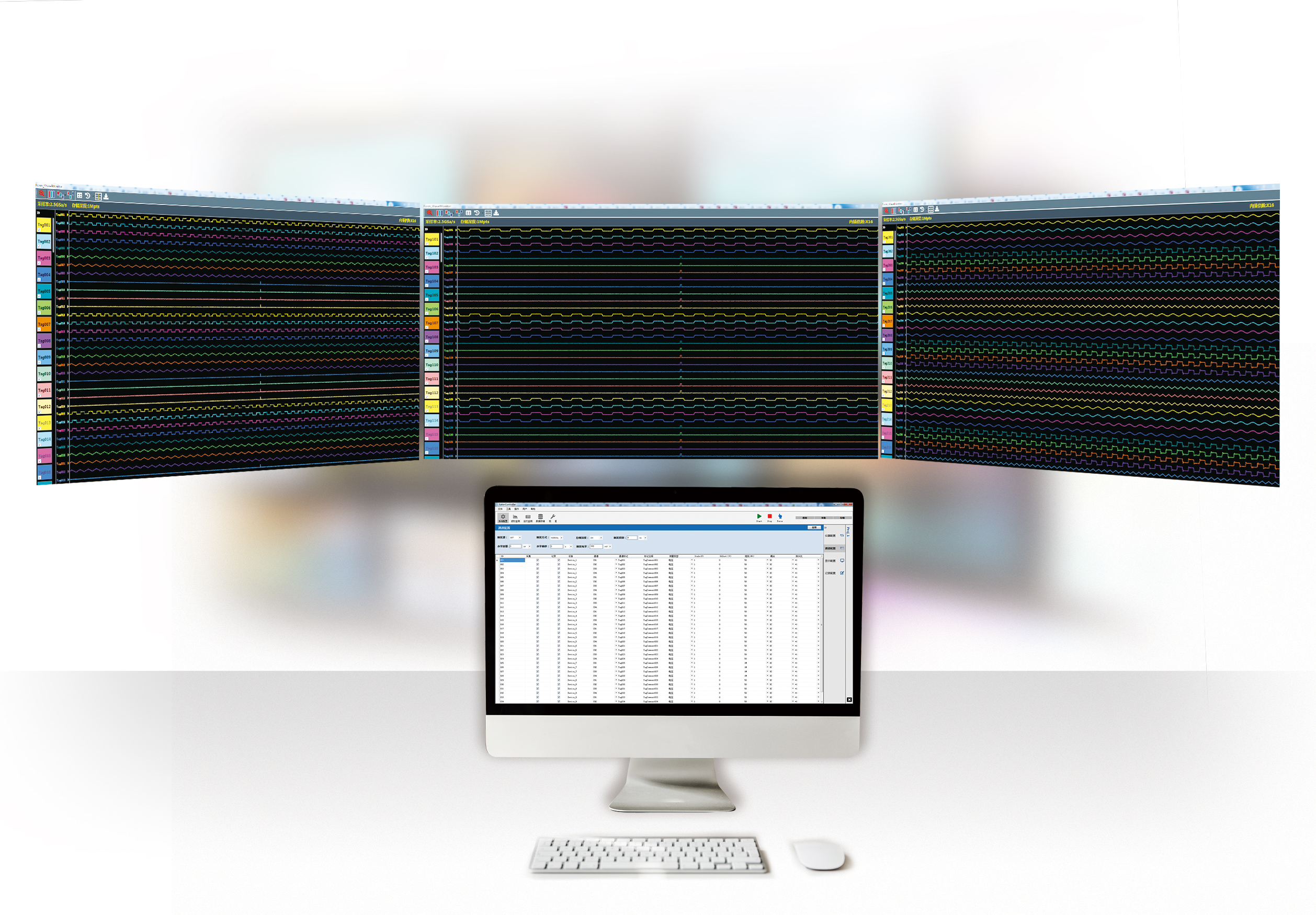 对于多通道的集成,选配的多通道高速数据采集软件可以满足对多机、多通道的配置,并提供友好的界面显示各通道采集的波形